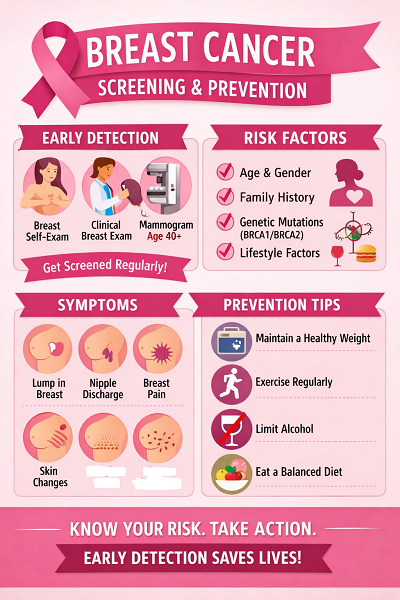 Women of all ages should be aware of the significance of early detection and treatment of breast cancer. Women with breast cancer have the highest chance of receiving effective therapy when the disease is discovered, when it is still tiny and limited to the breast.Early detection of cancer can save your life; therefore, it's critical to notify your doctor immediately if you notice anything abnormal.